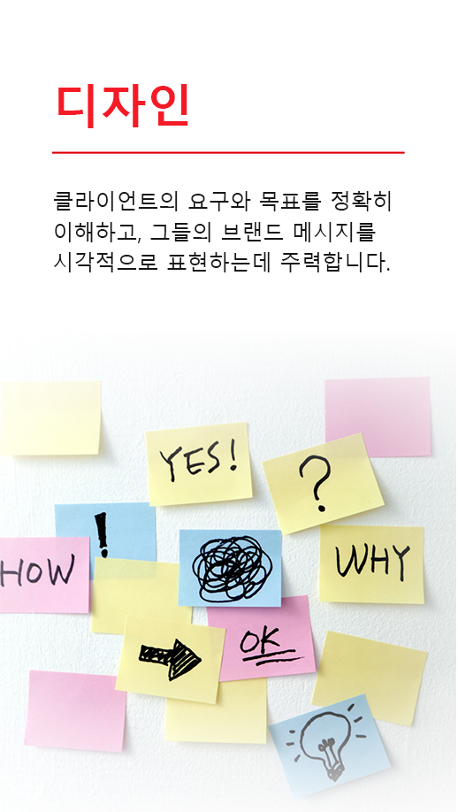 홈페이지 제작, 어플리케이션 제작, 영상 제작, 로고 디자인 등 다양한 분야에서 우리의 전문성을 발휘합니다.